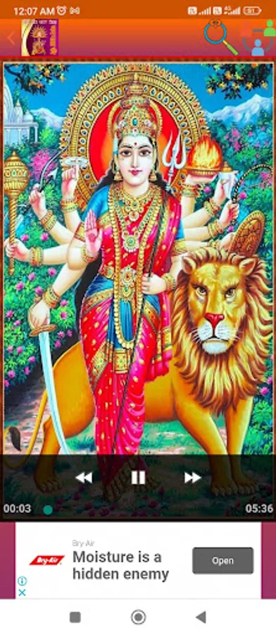 She is usually shown wearing a red sari. The color red symbolizes action and the red clothes signify that She is destroying evil and protecting mankind from pain and suffering.