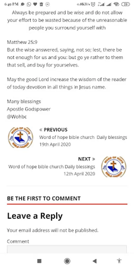 Receive daily devotional message from World of hope Bible Church