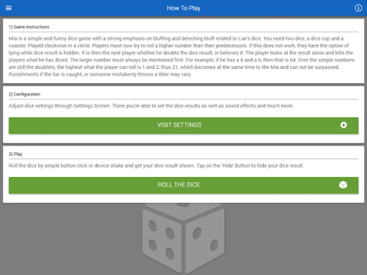 If Mia-Lying does not tell you - it is also known as Mexicali, 21, Meier, … and Mia and is also celebrated as a drinking game. Now you can play the popular game on your mobile phone or tablet.