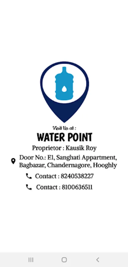 Water Point is located at Sanghati Appartment (Door No. E1), G.T. Road, Barabazar, Chandannagar, Hooghly-712136. For offline orders, you can visit us here or can contact us at +91 8100636511 / +91 8240538227.