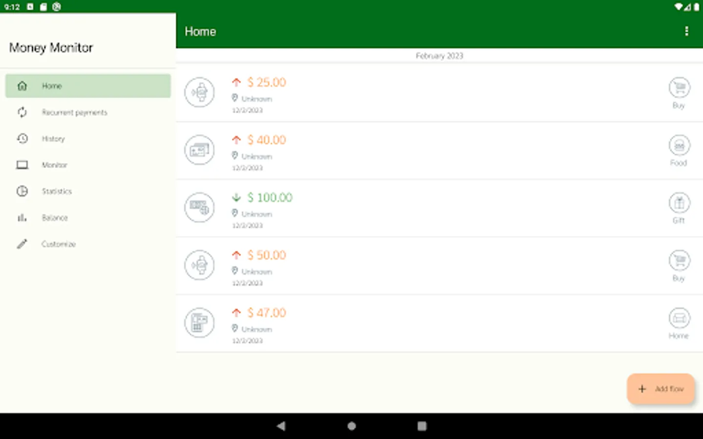 Money Monitor allows you to monitor your outgoing and income flows. You can record flows, assign different categories and payment methods, note the place and date of the expense. In the “Monitor” section you can set thresholds and check the progress of your savings plan over time.