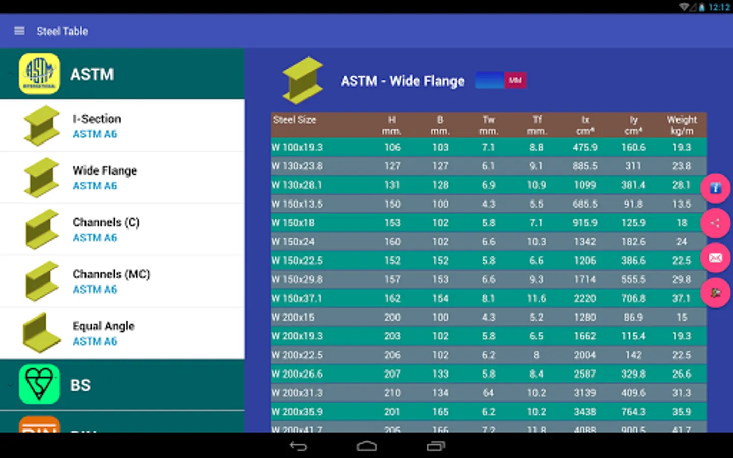 This application is dimension of standard steel size in ASTM, BS and JIS. It has many shape as below.