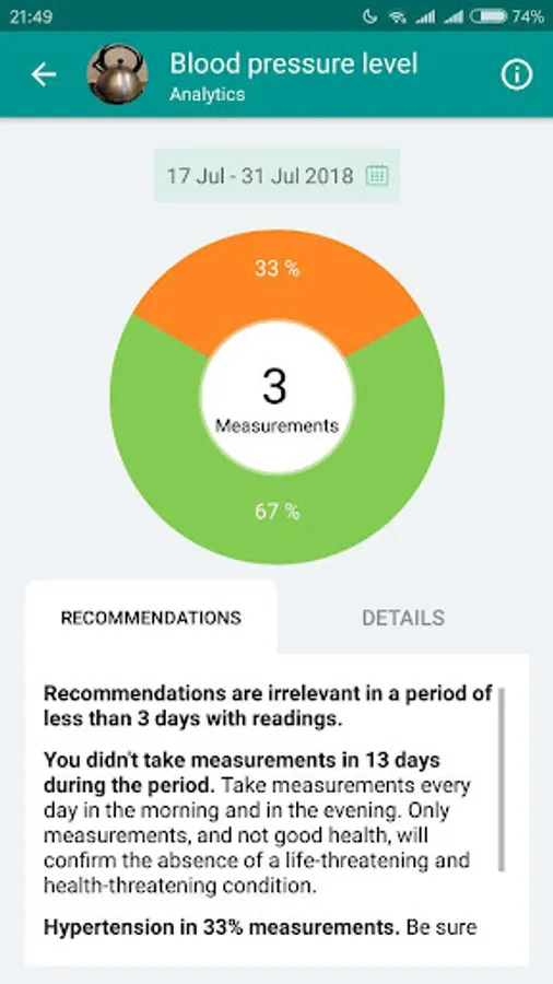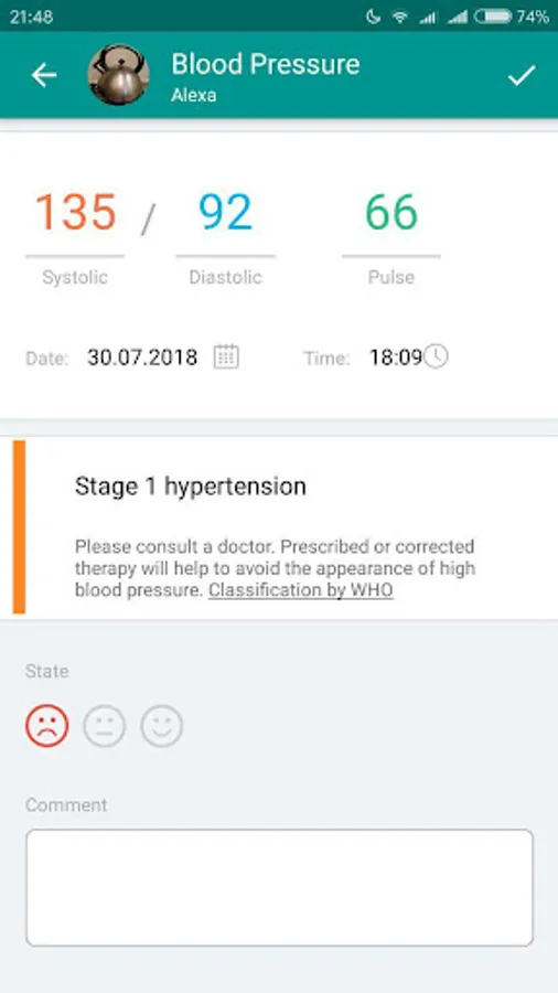 Instant notifications of critical metrics will reduce the risk of strokes/infarcts, and system reminders will not allow you to skip the next planned measurements and medication intakes.