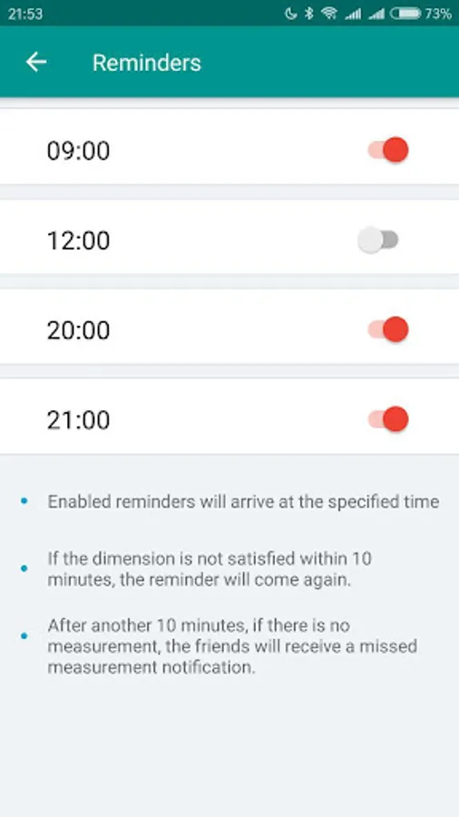 Inside the application you can provide access to your readings to your loved ones, relatives, and other competent persons. You will not miss the next measurement or medication intake.