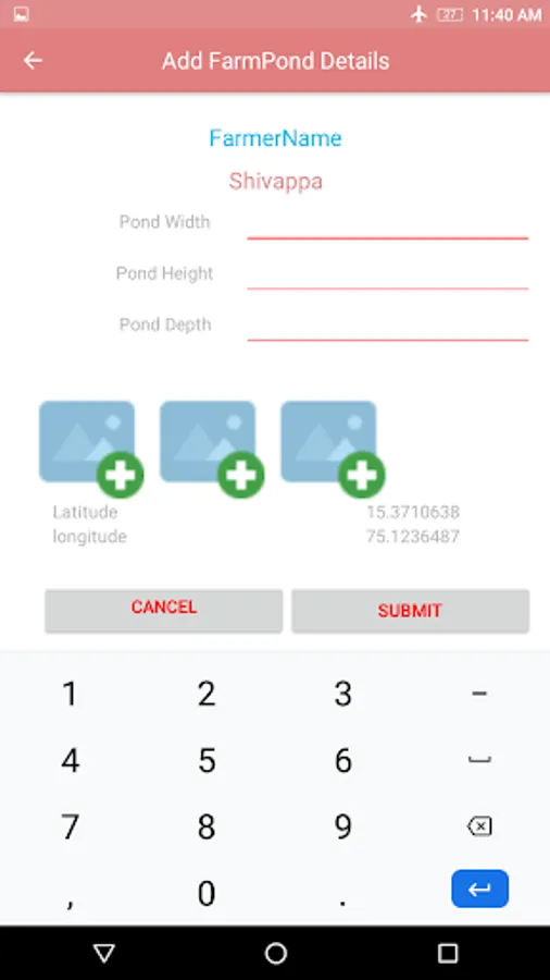 DF Agri [df.farmponds] application helps the SAP user in the fields to collect the farmer details and based on the farmer details the farmponds details will be collected. The Details of farmponds will the Length,Width,Depth and the images . The details include the fees collection, which is based on the number of days the JCB machine is been in working fields.