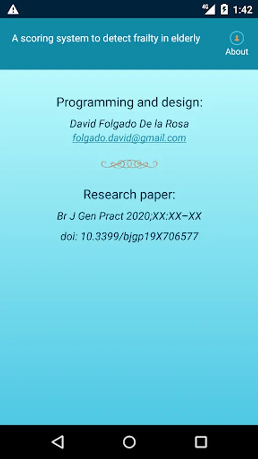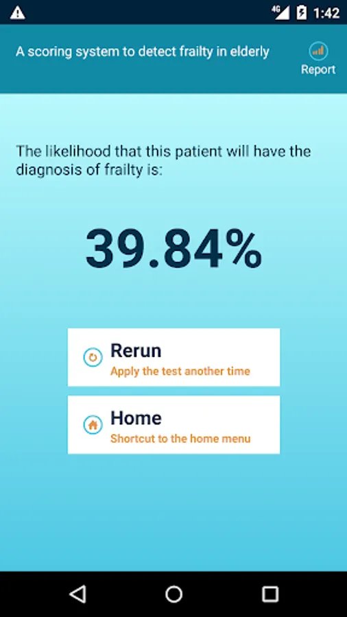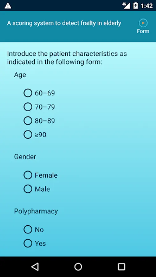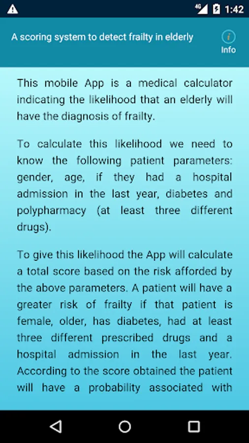 This mobile App is a medical calculator indicating the likelihood that an elderly will have the diagnosis of frailty.