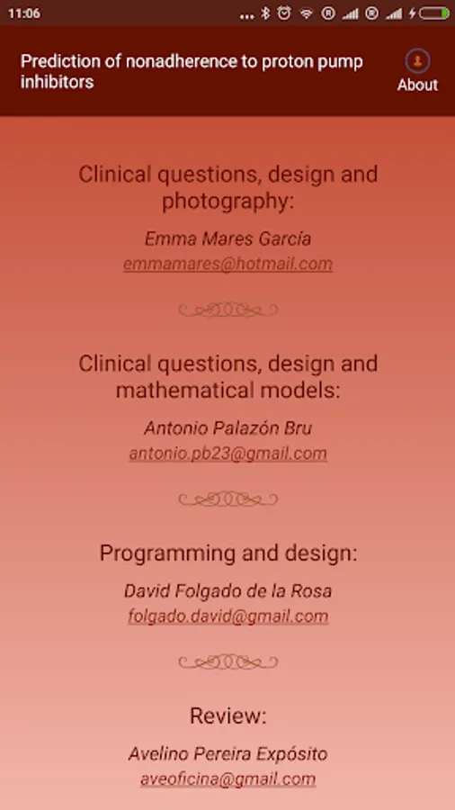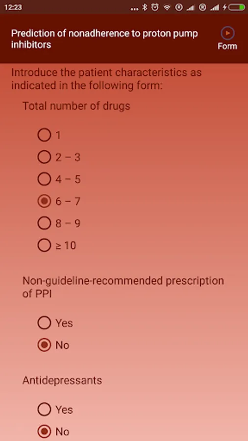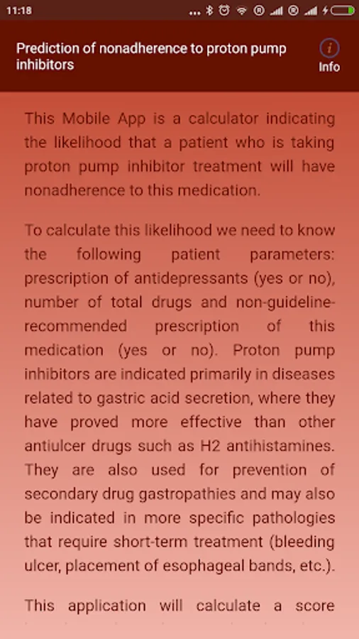 This Mobile App is a calculator indicating the likelihood That a patient who is taking proton pump inhibitor treatment will Have to this medication nonadherence.