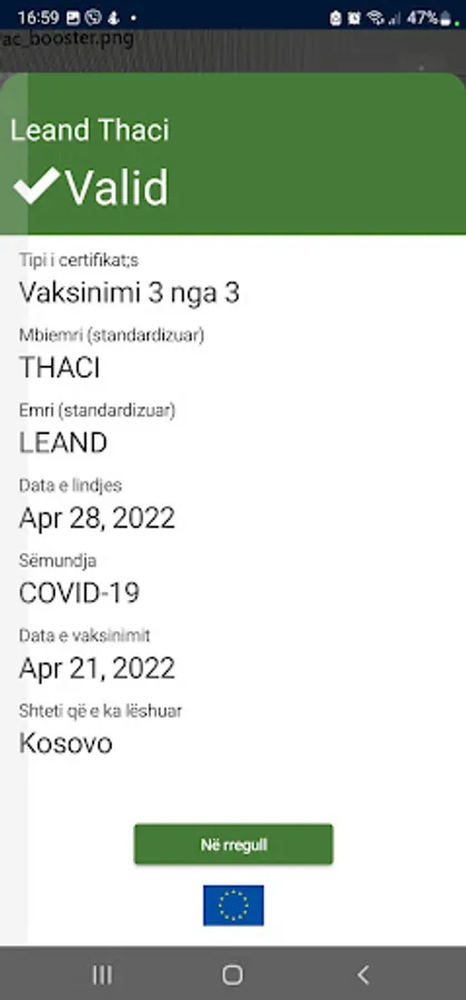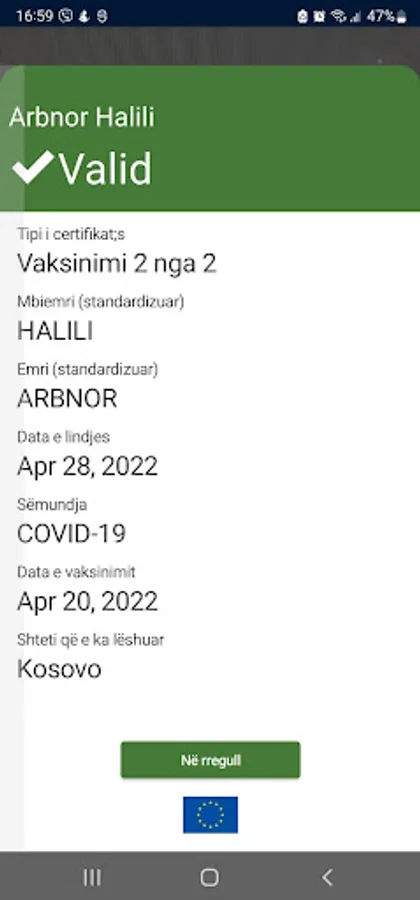 Ky aplikacion është ndërtuar nga Ministria e Shëndetësisë së Republikës së Kosovës me financim të Bashkimit Europian. Aplikacioni mundëson verifikimin e certifikatave digjitale për Covid ku hyjnë certificatat për vaksinim, testim dhe rikuperim pas virusit Covid.
