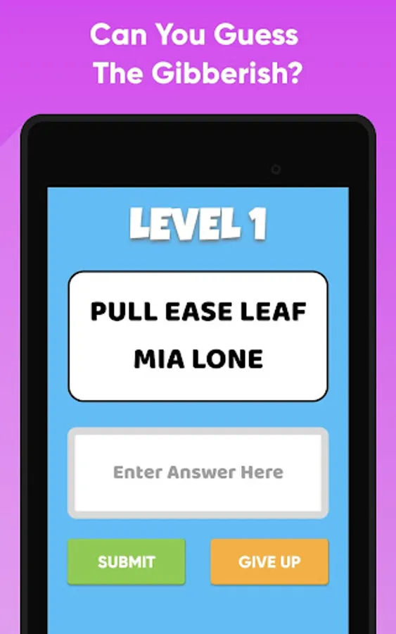 This Guess The Gibberish challenge game is perfect for players of all ages. If you are a fan of gab word games this app is perfect for you. Install Mad Babble today and start having fun!