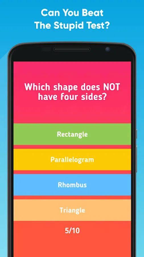 There are multiple stupid test levels of varying difficultly contain 10 general knowledge questions each. There are a total of 40 general knowledge quizzes in total. Can you unlock every level and prove you are a smart Genius and smarter than a fifth grader? With over 600 questions this is the prefect quiz game to play when you are bored.