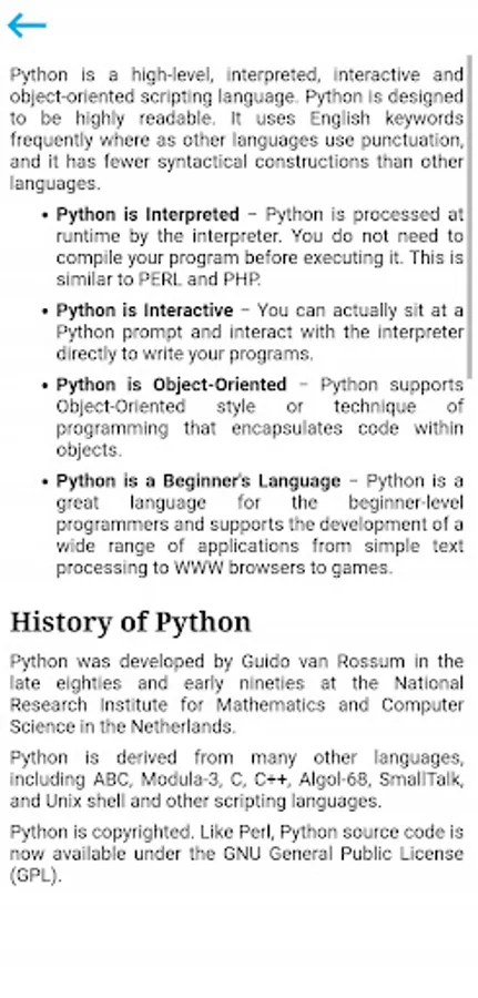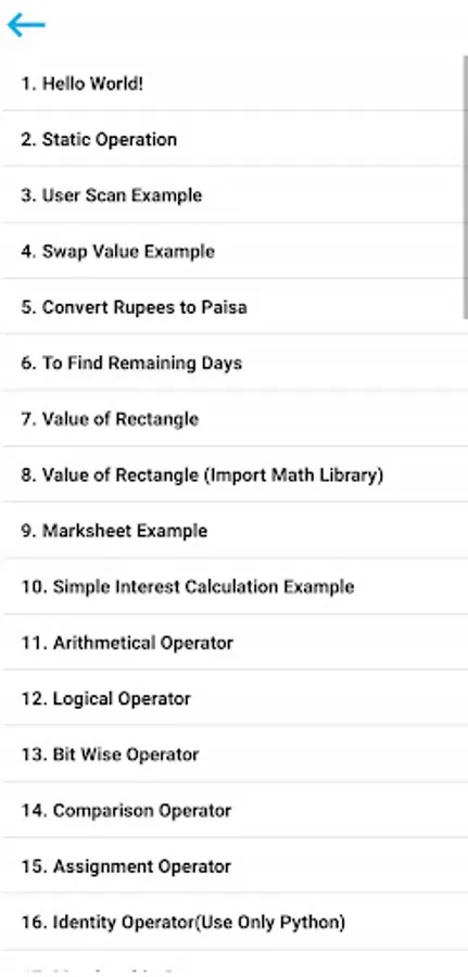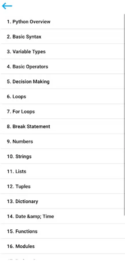 Python Tutorial app covers the following topics:-