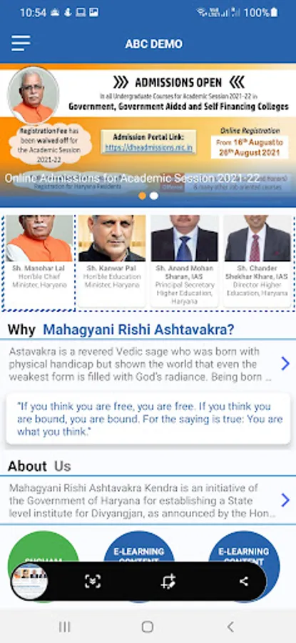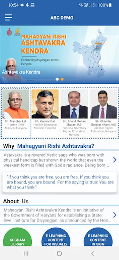 Mahagyani Rishi Ashtavakra Kendra is an initiative of the Government of Haryana for establishing a State level center for Divyangjan, as announced by the Honourable Chief Minister, Shri Manohar Lal, in 2018. Accordingly, the Department of Higher Education, Haryana has established a centre for Divyang students at the Government College, Karnal.