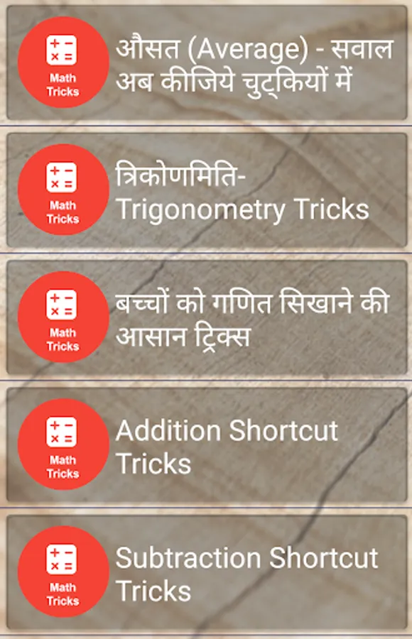 This application contain important math tricks in hindi that are very useful in competitive exam. All tricks are available offline so you don't need internet for using this application. This application contain the following math tricks -