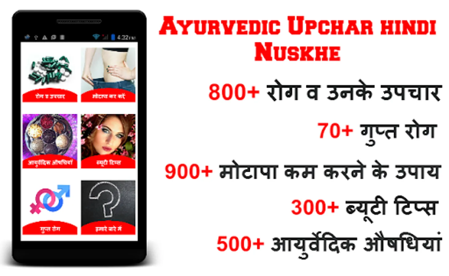 Ayurvedic Gharelu Upchar in Hindi and Ayurvedic Hind Gharelu Nuskhe Application provide you the great collection of the different type of ayurvedic treatment for all types of diseases like - Asthma, Diabetes, Viral Fever, Measles, Gastric Problem, Gout, Yellow Fever, Knee Pain, Hernia, Back Pain etc. It also provide the 500+ Ayurvedic Aushadhi that you can use as home remedies for some normal diseases. For fatty people this application also provides the 900+ Ayurvedic Upchar / Nuskhe for make himself fit. You can also find the 300+ beauty tips in this application for make him/her self beautiful.