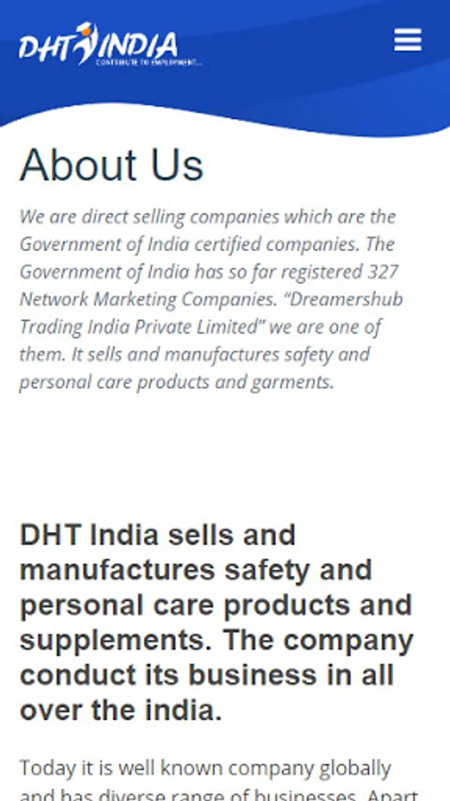 DHT India a unit of Dreamers Academy, The DHT India are direct selling companies which are the Government of India certified companies and certificate name is “Dreamers Hub Trading India Private Limited”.