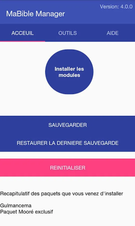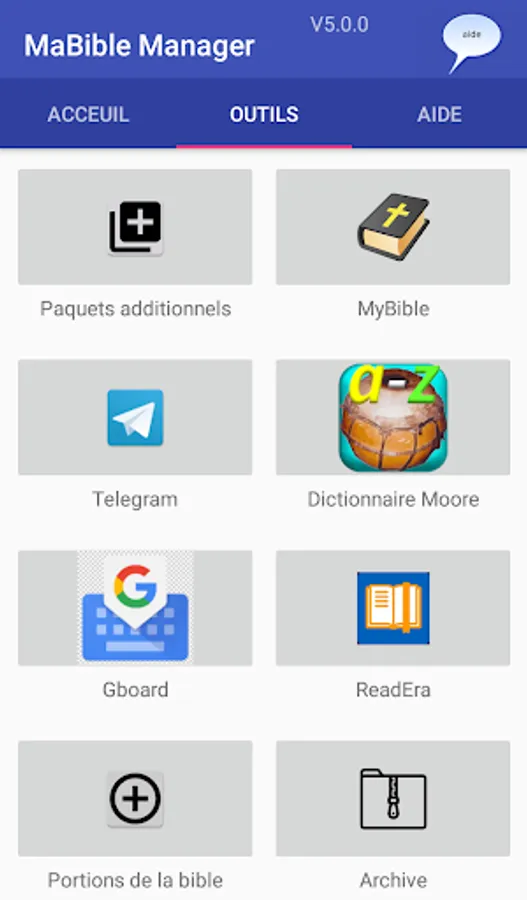 MaBible Manager allows you to install the library as defined by Pastor David Delma for Christian leaders in Burkina Faso. It offers synchronization, backup and restoration of your data in MyBible, support and a catalog of relevant applications and works.