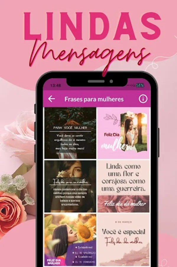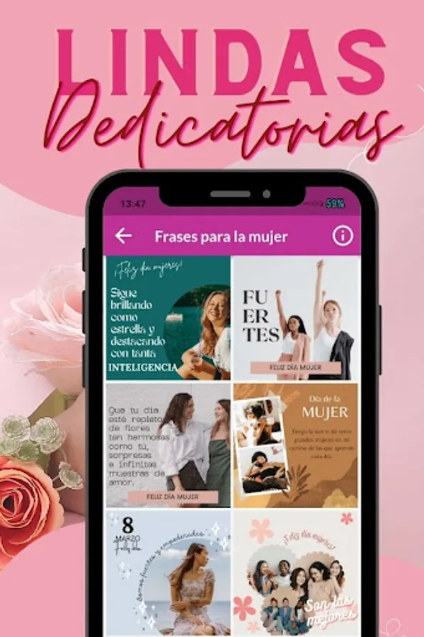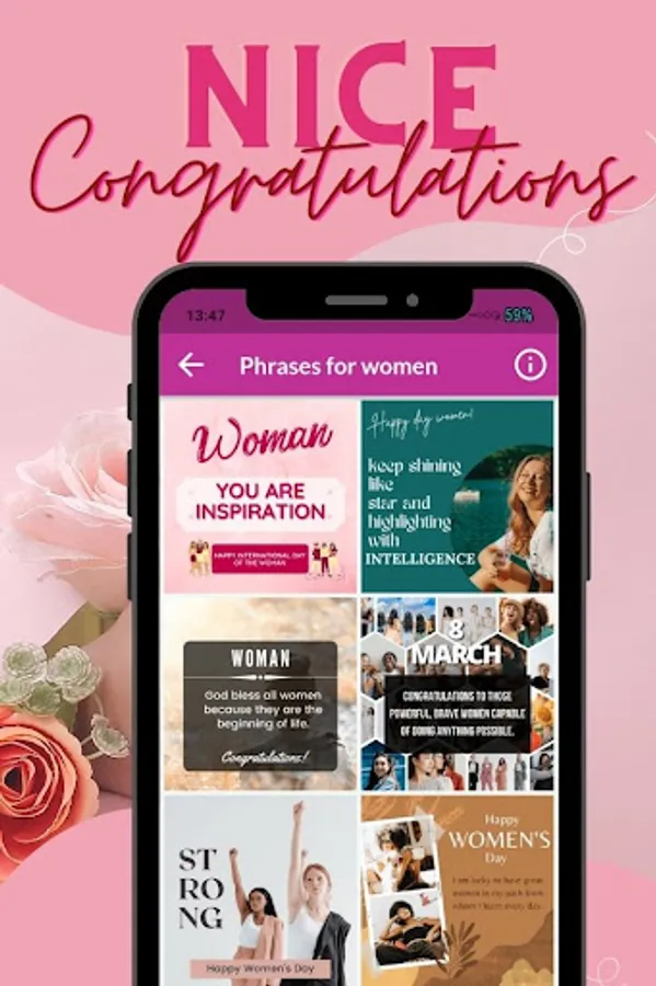 Download this HAPPY WOMEN'S DAY application today so that you can enjoy sending greeting cards showing how much you love your friends for being special women for you, a hard-working, enterprising, brave and successful woman; You can send these beautiful messages to your cousins, grandmother, wife, sister, mother and everyone you think is convenient and they will surely feel valued with these beautiful International Women's Day phrases.