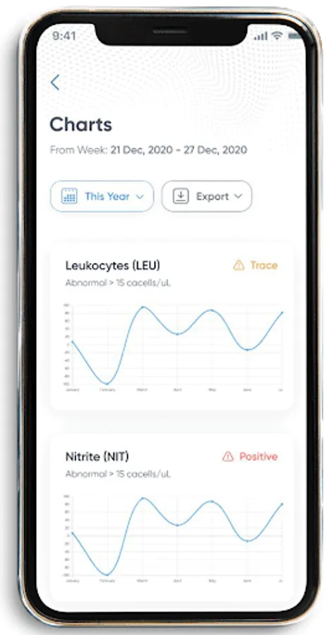 Keep track of your Urinox dipstick urine analysis results using the Urinox app.
