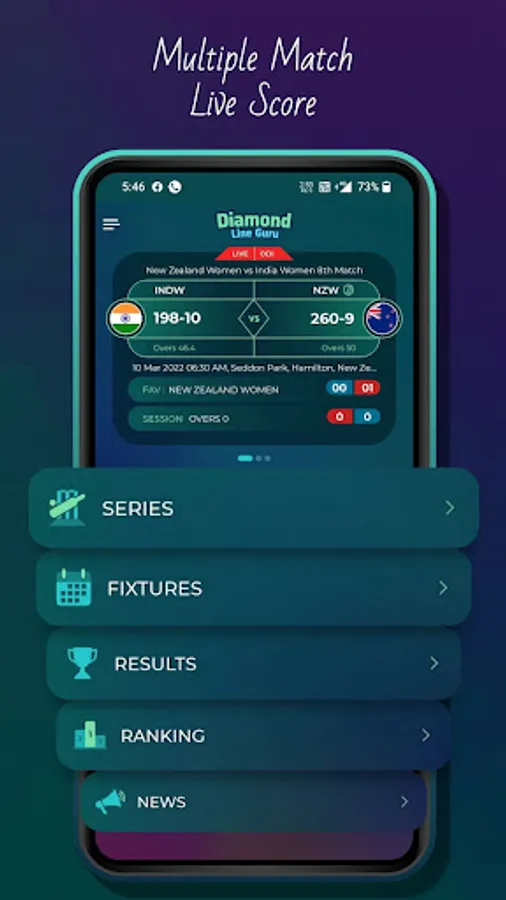 Catch all live cricket match scores on your mobile with diamond line guru - cricket live line. You can enjoy multiple match live scores on one screen.