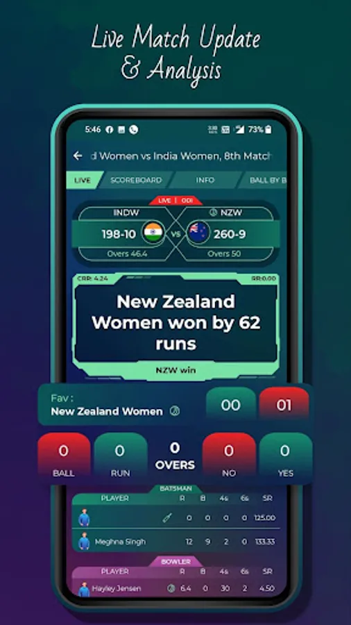 ✔ You will get to know both team's Batsmen and Bowlers live stats