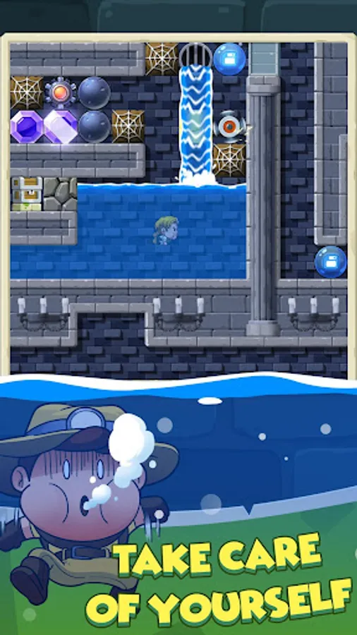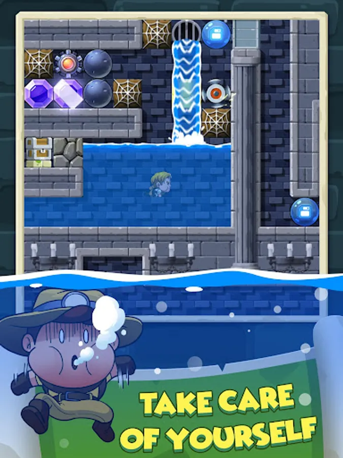 In your adventure, you must cut through leaves, break cobwebs to find the precious jewels. Gravity takes hold of precariously balanced boulders and sends them toppling down to smash any slow moving creatures, yourself included. At the end of each map, you must defeat a boss monster to escape for the next locale.