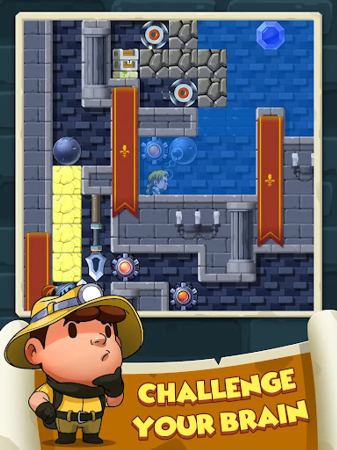 In Diamond Quest: Don't Rush!, you are an intrepid explorer, pressing deep into the jungles of Angkor Wat temple, the dungeons of Bavaria castle, and the icy Tibet caves. Your quest is collect a series of gems before heading for an exit that leads to the next room.