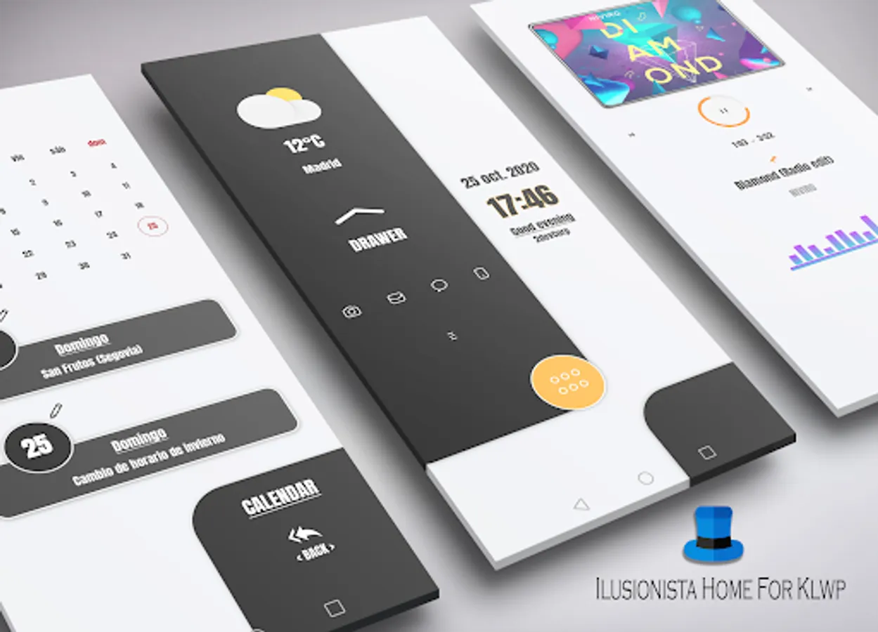 3 / Open the Klwp Pro app and select this elegant theme from the Menu / Installed tab
