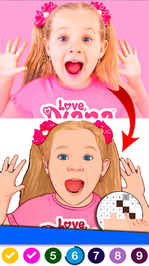 In this real call game with Diana and Roma videos, you must show all your creativity in coloring and painting games by number.