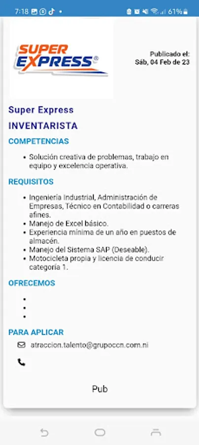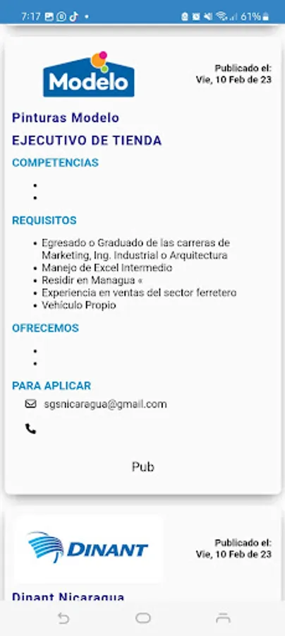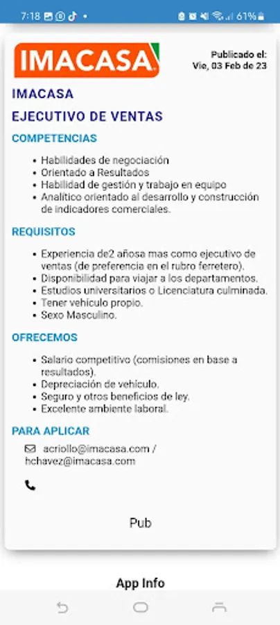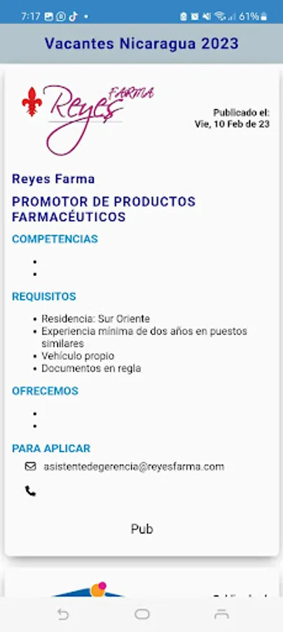 Our goal is that in a single app you have a summary of the published vacancies. For information about each position, you must write to the contact email of each published vacancy.