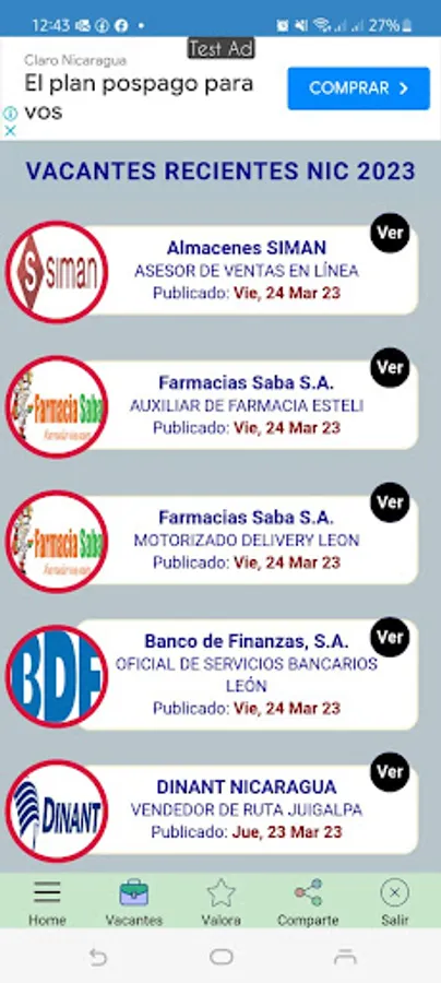 Jobs Nicaragua is an app that is responsible for collecting the main positions published by employers to offer them to you in one place.
