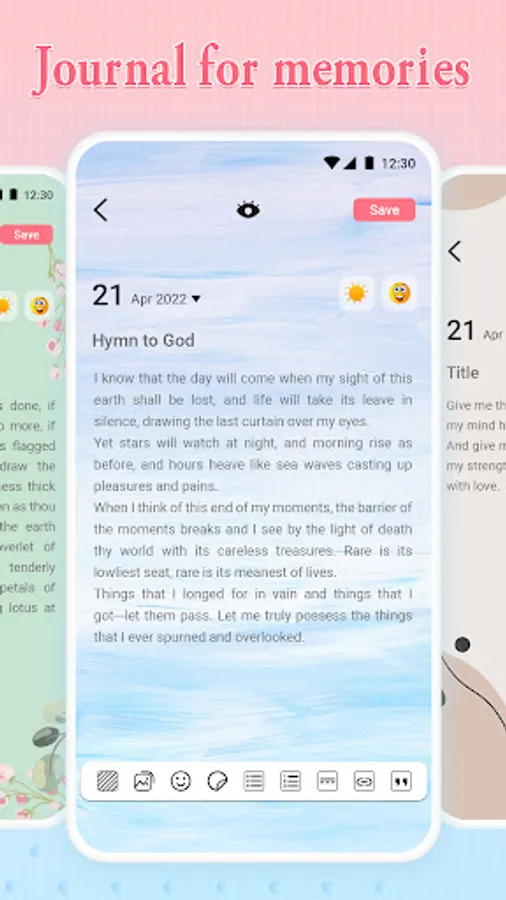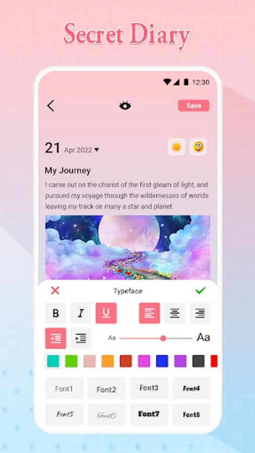 My Daily Diary - Secret Journal provides users with eye protection mode. So let us say goodbye to sore eyes and enjoy the fun of writing a diary.