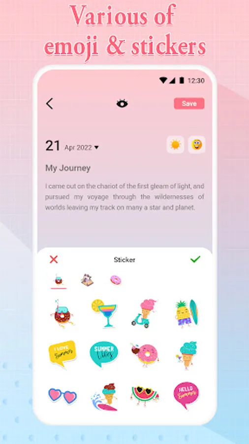 Various expressions and stickers are continuously updated. Make your journal more specific and special