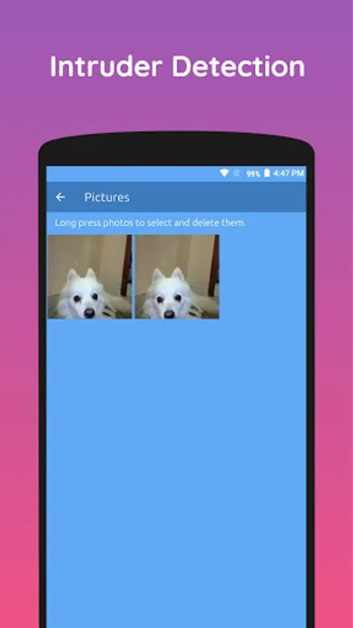 Capture a picture of an unauthorized person who is attempting to unlock your diary with an invalid password. Camera permission is required for this to work.