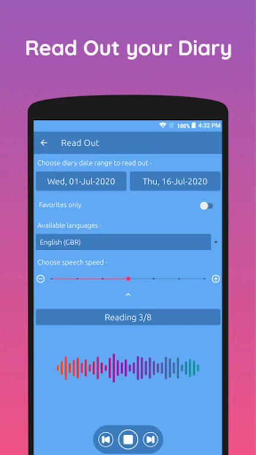 Want the app to read out your diary for you? You can always use this feature to read out all your entries in your own language.