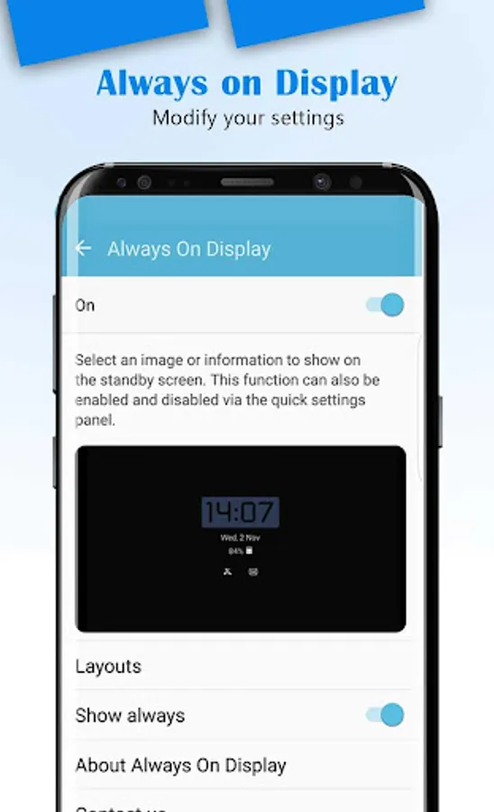 The always on display application is designed with lots of customizable features as you like, here are some of the main features: