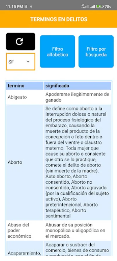 Application that provides information on legal terms used in Peru offline, suitable for: