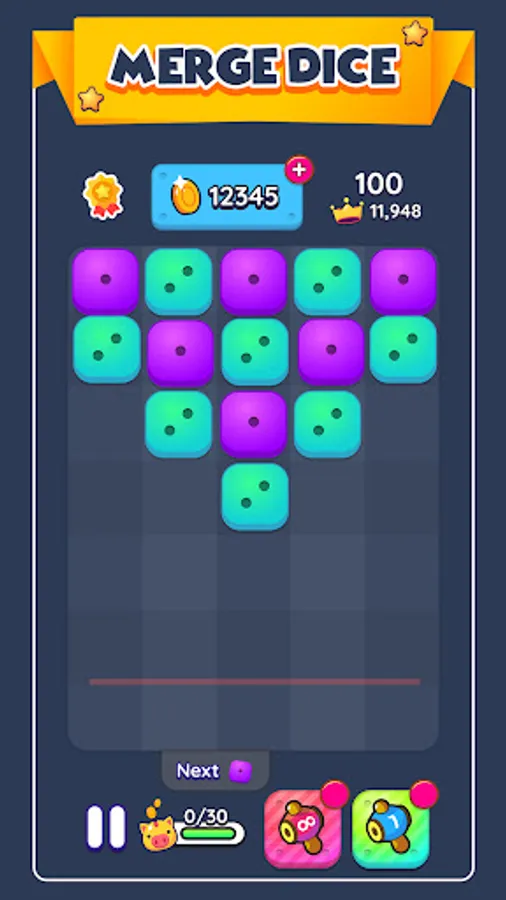 The goal is to break your record and avoid filling one column to the top. Try to do combos to earn coins and use them to modify each fresh run; for example, you get to see the next dice you have to place or get a head start in your fresh run with a higher number dice. Share your stats to show off how high of a number you’ve been able to merge so far.