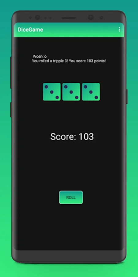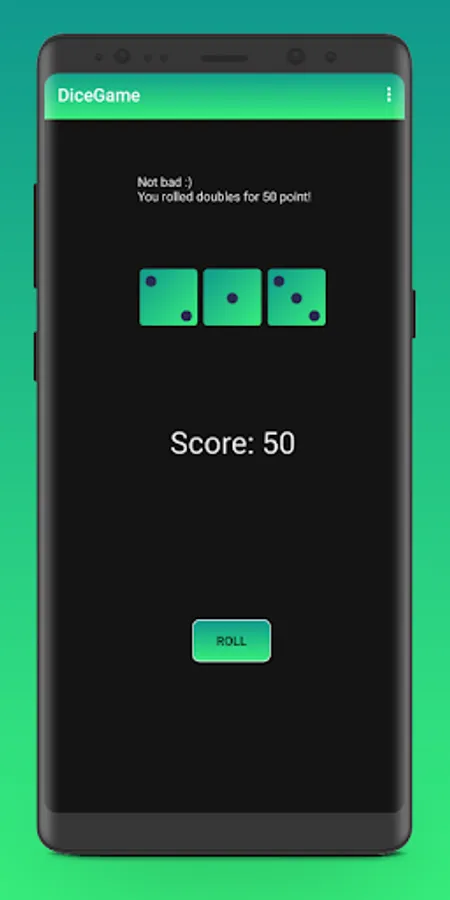 In this game you get to roll three dice so if you get all three same numbers you get a score of 100, if you get two same numbers in three dice you get a score of 50 and if you get all three numbers of three dice different then you don't get any score.