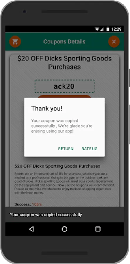 This dick's sporting goodsapp smart coupons Works(promo codes) app is not an official app.