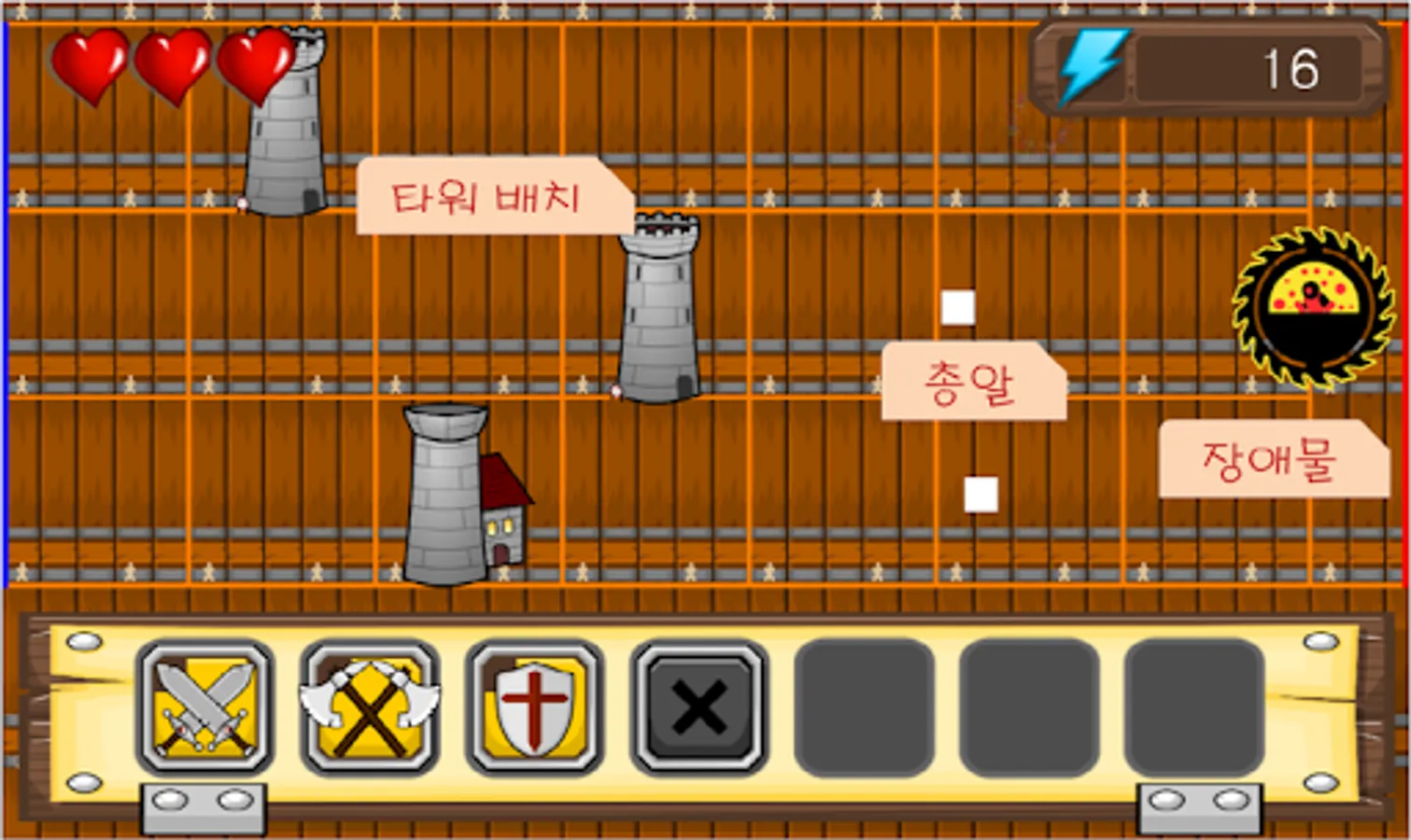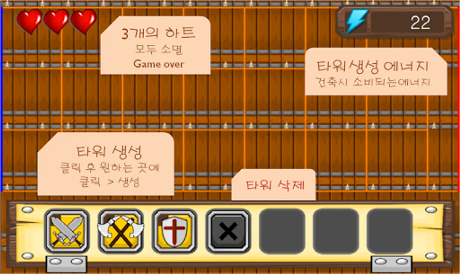 You can build up and destroy towers by collecting energy, and the tower attacks ranged monsters on that line.