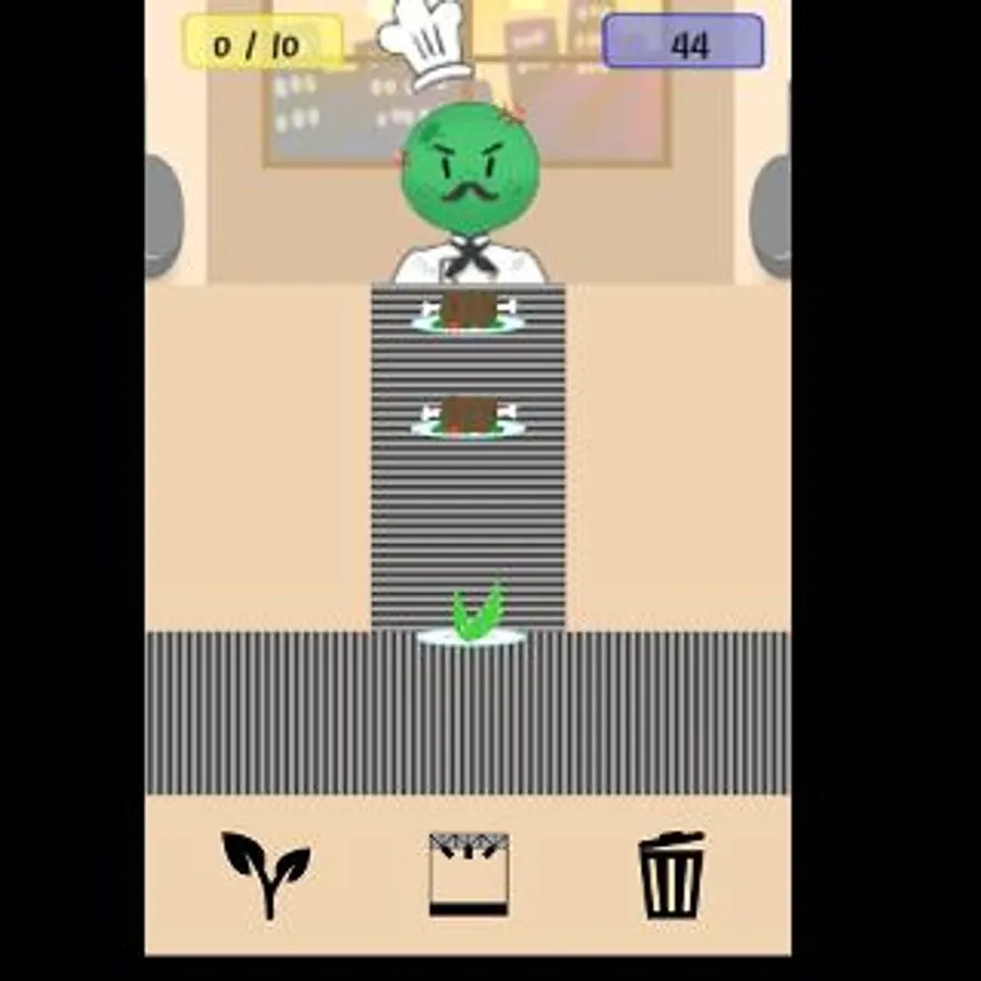 You worked in a restaurant for a zombie, a green new human being who consumes photosynthesis plants and gets nutrients. However, owner Sadden Ramsey can not distinguish between vegetable and meat dishes. You better get Ramsey to help you with vegetable dishes, and meat dishes to trash cans!