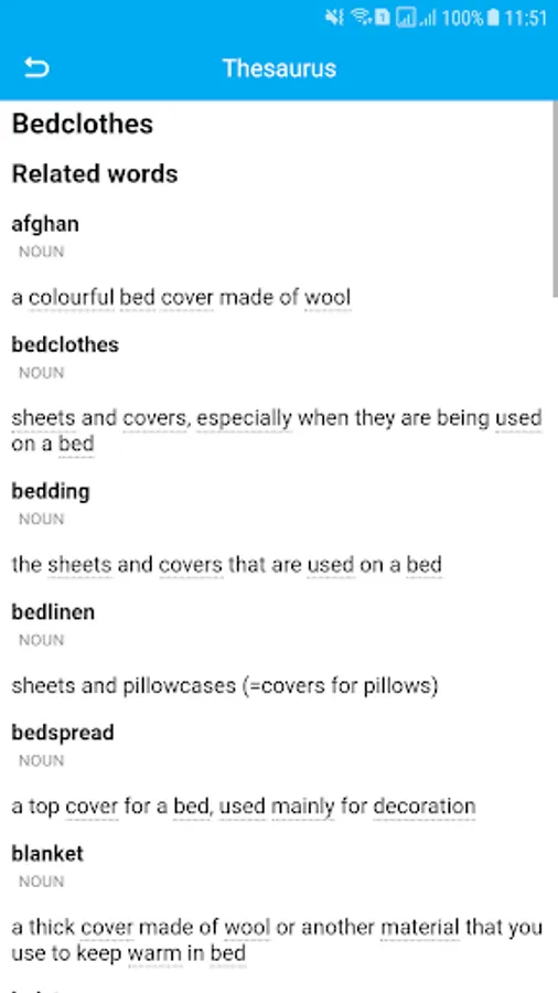 * Short and clear definitions, with menus in longer entries to help find the meaning quickly