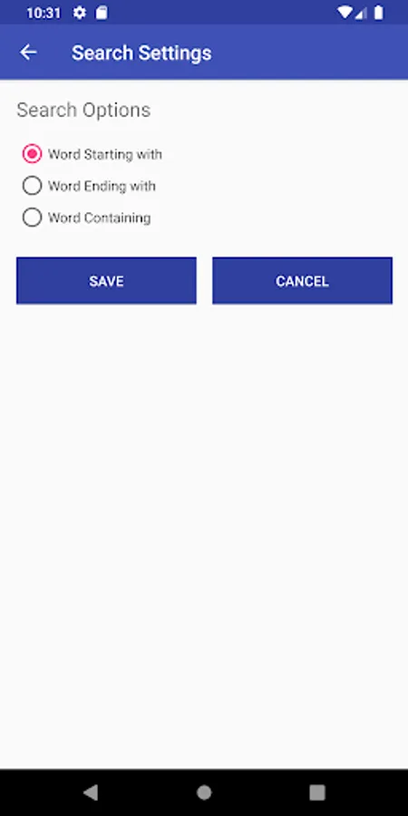 - "Search Options" feature that help to search the word "Starting" with searching word or "Ending" with searching word or "Containing" the searching word.