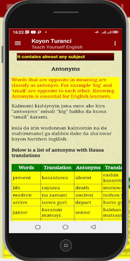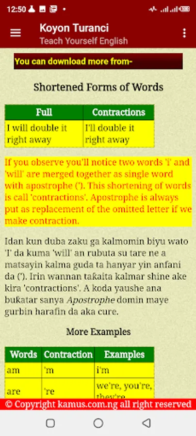 Learning English lessons with Hausa descriptions where applicable for English learners and their tutors developed specifically for Hausa speakers wishing to learn or teach English.