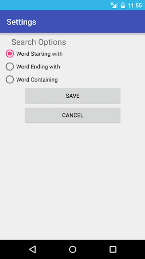 - "Search Options" feature that help to search the word "Starting" with searching word or "Ending" with searching word or "Containing" the searching word.