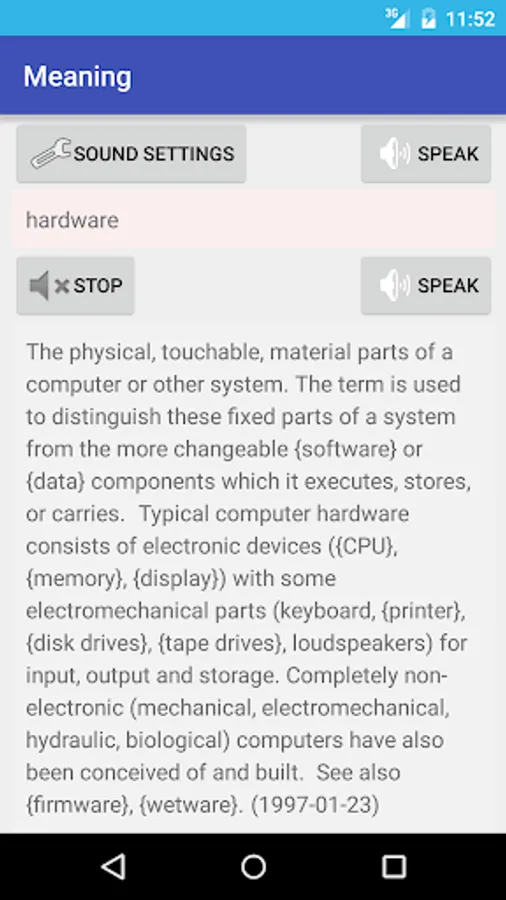 - Search the English word in Computer dictionary and it will display its detail.
