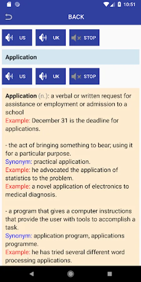 - 100% FREE and Full version of English Audio Dictionary with sound from English to Simple English, Synonym and Examples. Use without Internet. Listen every word from American and British voices. Developed by www.SearchTruth.com