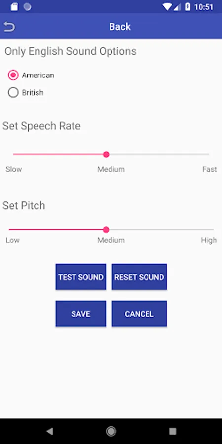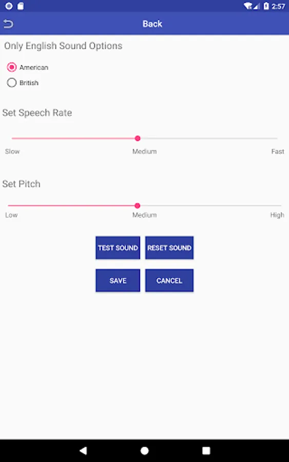 - Select the English voice accent from USA (American) and UK (British).