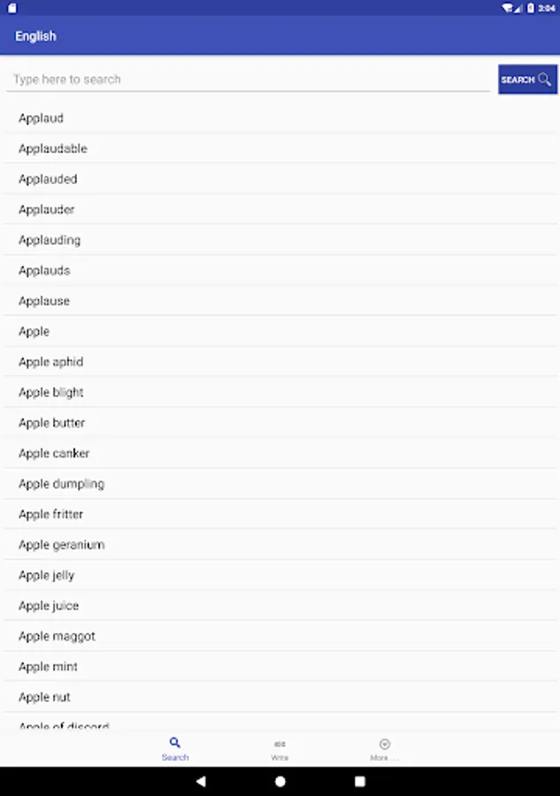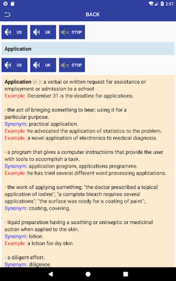 - Search the English word and it will display its simple translation, synonym and examples.
