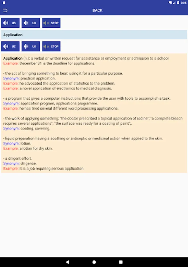 - Listen the English sounds of searching words and its simple english, synonym and examples.